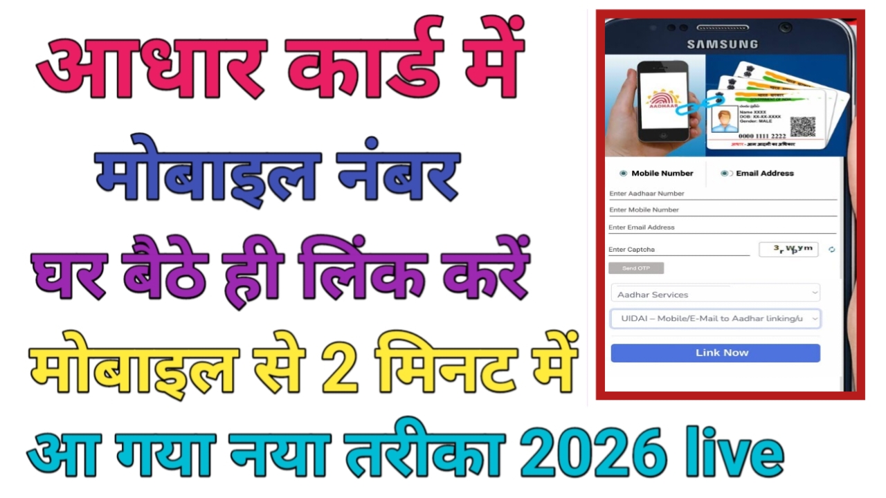 हेलो दोस्तों मैं आप सभी को आज के इस आर्टिकल में स्वागत करता हूँ दोस्तों आप लोगो को जानकारी देंगे की आधार कार्ड में मोबाइल नंबर लिंक कैसे करें | दोस्तों आधार कार्ड एक बहुत महत्वपूर्ण दस्तावेज है जिसमे आपको अपनी जानकारी को अपडेट रखना जरुरी होता है इसलिए अपना मोबाइल नंबर आधार कार्ड में अपडेट करना भी बहुत जरुरी है | अगर आप आधार कार्ड से कोई भी सुविधा ऑनलाइन प्राप्त करना चाहते है तो इसके लिए आपके आधार कार्ड में मोबाइल नंबर लिंक होना चाहिए | आज के इस आर्टिकल में इसकी पूरी जानकारी को विस्तार से बताएंगे | इसके लिए आपको इस आर्टिकल को ध्यान पूर्वक अंत तक पढ़ना होगा |