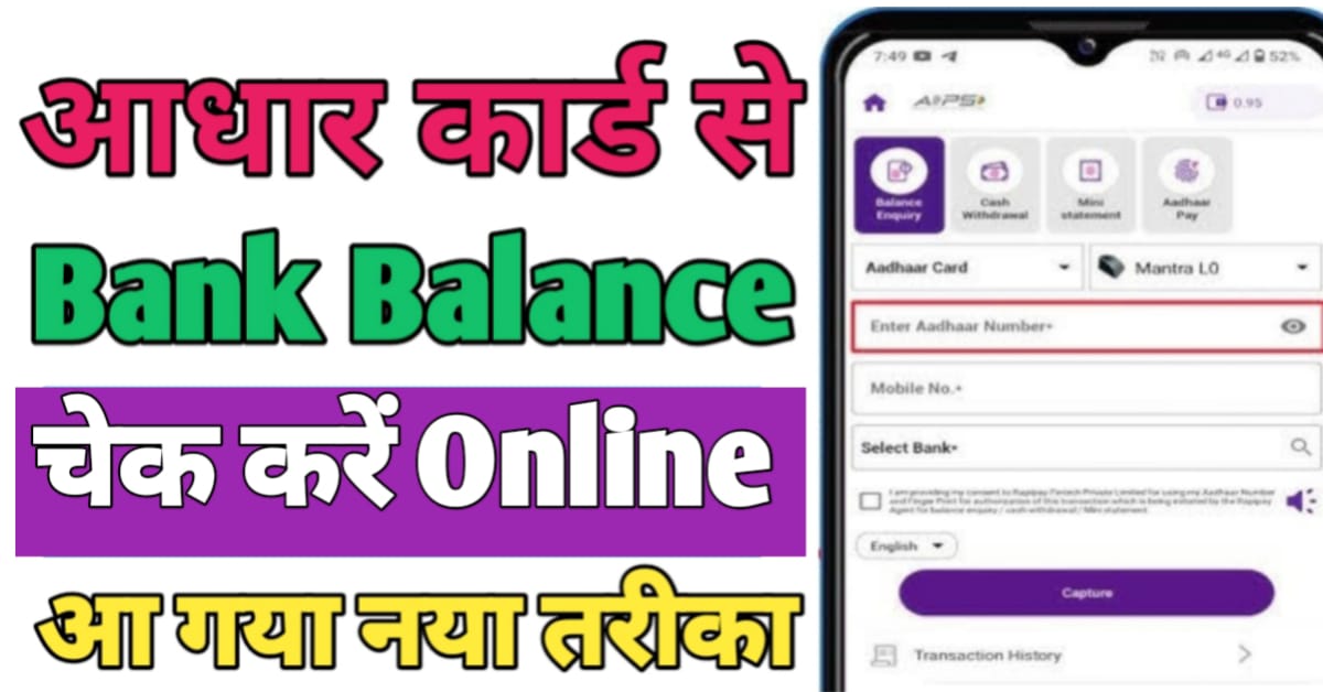 Aadhar Card Se Bank Balance Check : आधार कार्ड से बैंक बैलेंस चेक कैसे करें ?